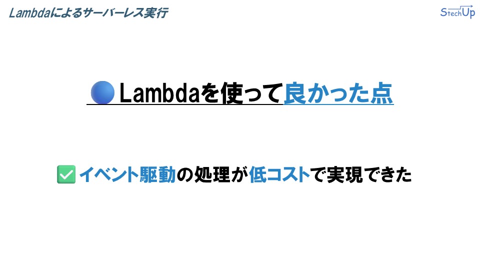 次に、LuxucomでLambdaを使って良かった点です。