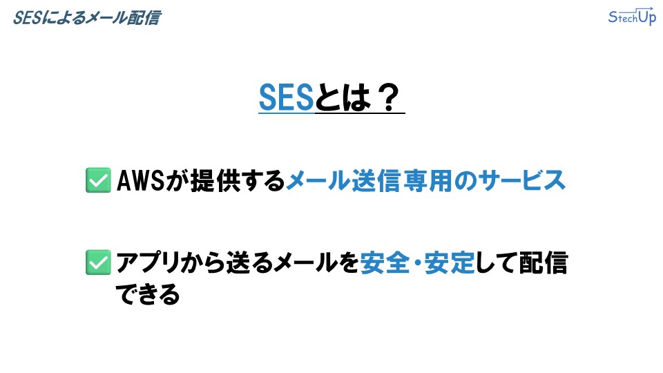SESは、AWSが提供するメール送信専用のサービスです。